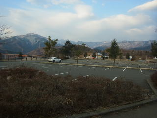 | 鳥居原ふれあいの館の駐車場。ここが出発点。ふれあいの館は9時からだが、前日に電話で聞いたら7時ころには駐車場は開いてるとのこと。 |