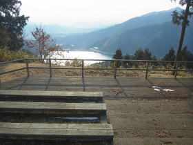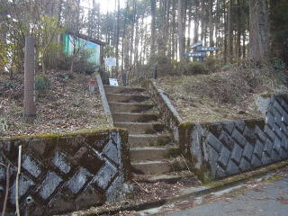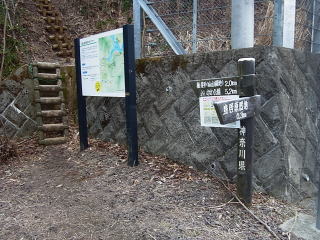 | 南山遊歩道入口。駐車場から湖岸の道路を辿り、芋窪橋を渡った所。 |