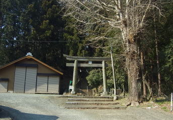 | 八坂神社の左側に踏跡があったのでそこを進むと、藪っぽくなり、これは大変そうだと思う間もなく林道に出てしまいました。 |