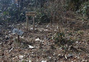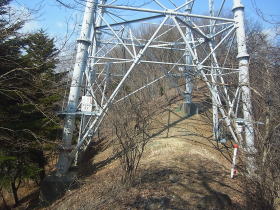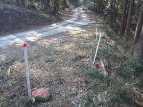 | 鉄塔からの下りは送電線の巡視路らしく、よく整備されていました。下山して車道が近づくと、巡視路は迂回していましたが、車道が見えましたので巡視路から離れ薄い踏跡を辿り、最後は畑を通って車道に下りました。 下りた後、茨菰山の入口を見に行き、近くの駐車スペースを探しましたが無さそうでした。 |