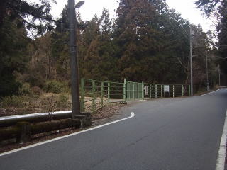 | 茨菰山林道入口。厳重に閉ざされていたので、端の電柱を回り込むようにして林道に入りました。 |