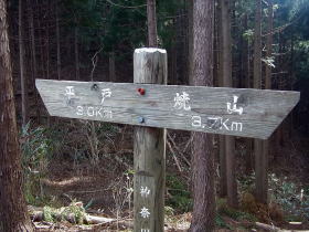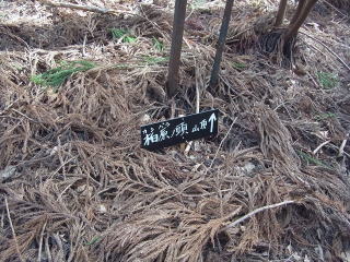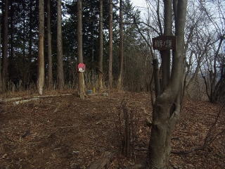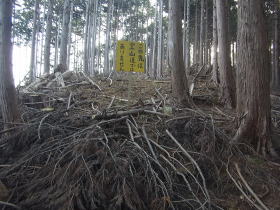 | ハイキングルートの柏原ノ頭の道標のあるところにあった山頂への道標。 |
