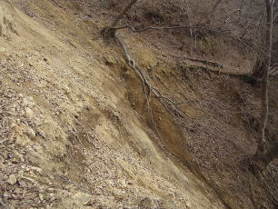 | 平戸に向うハイキングルートにあった崩落地。雨で緩んでいたり、崩落が進むと怖そう。 |