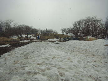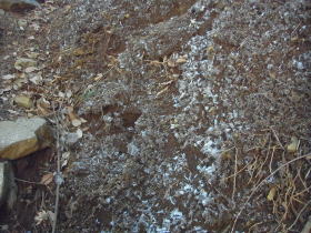 | 焼山の山頂が近くなると霜柱ができていました。 |