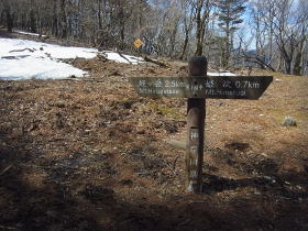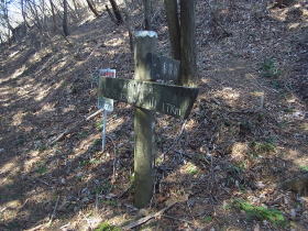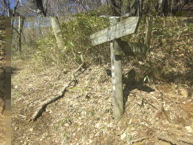 | 黍殻山にも巻き道があり、山頂への分岐の道標がありました。 |
