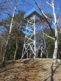 | 山頂の展望台。展望台からは少し霞んでいる宮ヶ瀬湖が見えました。 |
