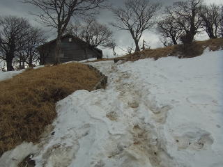 | 黍殻避難小屋を案内する道標には園地避難小屋と書いてありました |