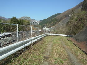 | 道なりに進むと中央高速道の下をくぐり高速道の脇の道になる。 |