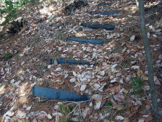 | 公団笹子線10号鉄塔間近になって現れたプラスティック製のステップ。ステップには右のほうからはっきりとした踏跡が達していました。 |