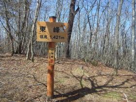 | 東峰。東峰への登りは一昨年登った大谷ヶ丸西尾根とよく似ていました。 |