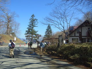 | 上日川峠。駐車場はほぼ満杯のようで、多くの人で賑わっていました。 |