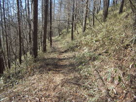 | はっきりとした道ですが、落ち葉や枯れた小枝がほとんど踏まれていないので歩く人が少ないことが分かります。 |