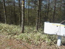 | 砥山峠。下草は丈の低い笹なので砥山に行こうと思えば行けそうですが行きませんでした。 |