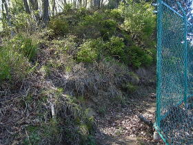 | 甲斐大和の下山地点。踏み跡を辿って下ると尾根の末端のここに下りてきました。害獣よけの立派なフェンスがあり、直ぐ先に見える道路に行けません。 フェンス沿いに下りましたが道路に出られそうな所は出て来ません。フェンスをよく見るとところどころに開けられる扉があるのに気付き、中に入り畑を通って無理やり道路に出て甲斐大和駅に着きました。落ち着いてフェンスを見ればもっと早く扉に気づいて簡単に道路に出られたのにと反省しました。 こんな訳で駅から下山地点に行けといわれても行けません。 |