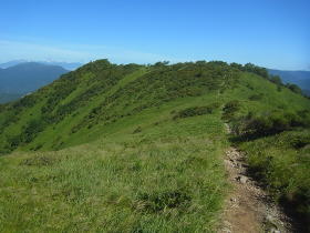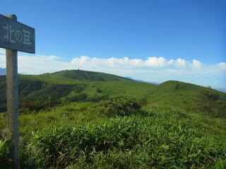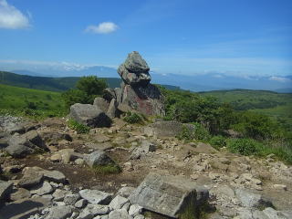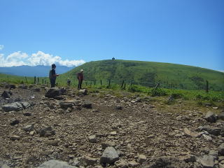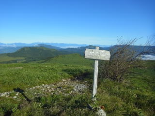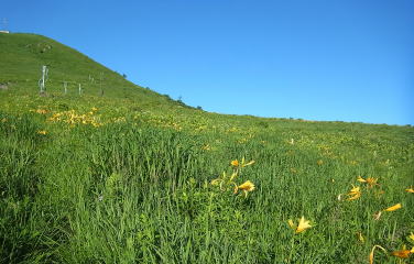 | 山頂から下って振り返って見る車山。この辺りにはニッコウキスゲがある。 |