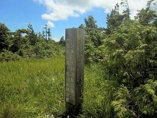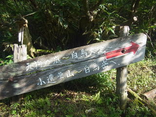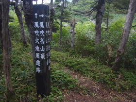 | 山荘付近から風吹大池周遊路に入りちょっと進むと風吹岳への道標がありました。 |