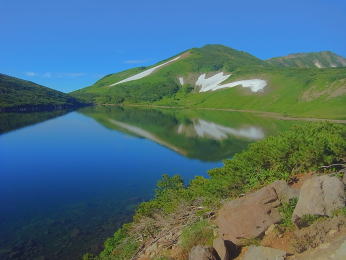 | 白馬大池に映る小蓮華山に連なる尾根。右端が小蓮華山。 |