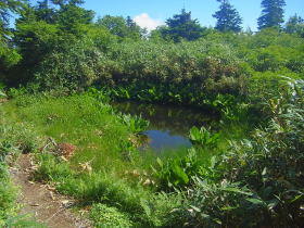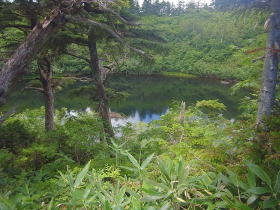 | 天狗原から風吹大池に向かう道には、このような小さな池が幾つかあり、雨が降れば水がたまりぬかるみになりそうなところが随所にありました。 |