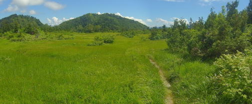 | 蓮華温泉に向かう道にはこのような湿地がいくつもありますが、木道はありません。登山道があるのに木道のない湿地は少ないような気がします。 |