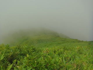 | ガスが晴れるかもしれないと思い山頂に少し長居をしましたが、晴れませんでした。 思ったより早めに山頂についたので、帰路は時間を気にせずに花の写真を撮りながら下山しました。 山頂での眺望はだめでしたが、山頂や周囲の眺望を楽しみながら登れたので、十年くらい前に登った時の濃いガスで何も見えなかったのと比べれば遥かに楽しめました。 |
