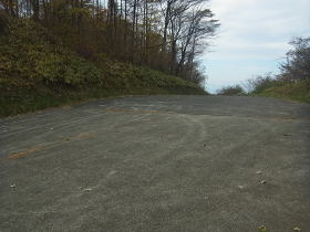 | 杖の神峠。林道の幅が広くなっていて、駐車スペースとしても使えそう。 |