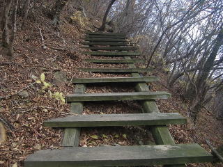 雌岳に登る道の急なところにははこのような立派な階段がありました。