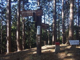 | 小下沢林道分岐の道標。ここから東尾根のバリエーションルートに入る。 |