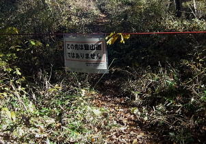 | バリエーションルートの入口には道を塞ぐように丸太が置かれ『この先は登山道ではありません』と書いてありました。おまけに倒木も道を塞ぐように倒れていました。 |