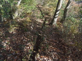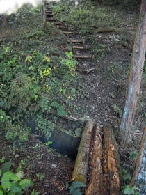 | 下山地点に近づくと急な斜面にU字溝があり、これに沿って下りました。 |