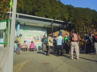 | 軍畑駅。多くの登山者がいましたが、高水三山や雷電山を目指す人らしく、駅前の坂を下るのは私だけでした。 |