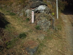| 沢井への下山地点。高水三山入口の道標がありました。ここからは舗装道路歩き。 |