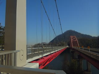 | 三井大橋。車道の橋と歩行者用の吊り橋があり、交通量は少なそうで、お金をかけすぎているようです。 |