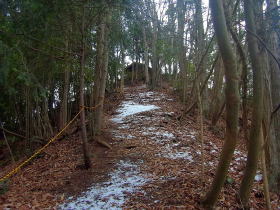 | 虎丸山の山頂付近の急な登りにはトラロープが張ってありました。 |