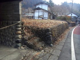 | 取り付きを探しながら道路を歩きますがそれらしい場所がないので、戻ってこの石段のある空き地に入ってみました。 |