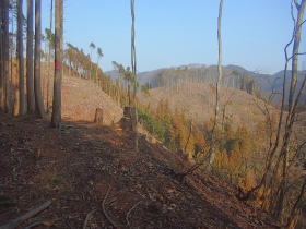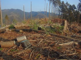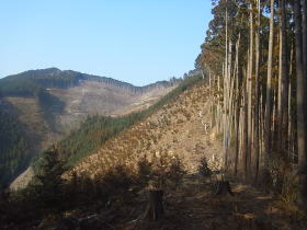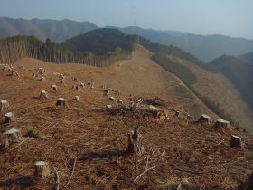 | 次に稜線の左側が広範囲に伐採されている所に出ました。 |