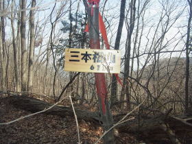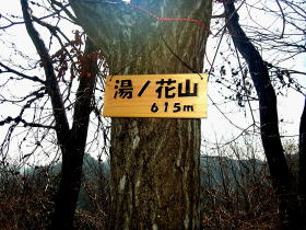 | 北高尾山稜の峰には新しい山名標が付いていました。三本松山は従来の位置とは違う2.5万図のP611に付けられました。湯ノ花山というのは初めて知りました。 |