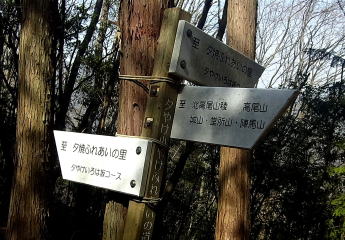 | 黒ドッケから夕やけ小やけふれあいの里に下る道は、ふれあいの里近くで分岐し両方共夕やけいろは坂コースと書いてありました。昭文社の地図とは違う西側のコースをとりました。ちょっと遠回りだったようです。 |