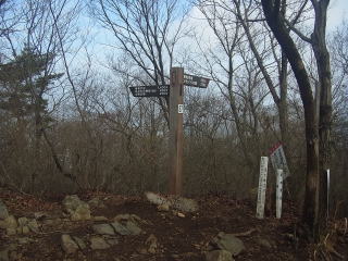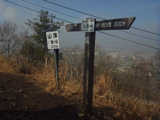 | 三毳山。みかも山公園のパンフレットには青竜ヶ岳と書いてありますが、山頂の別の表示では青を消して竜ヶ岳となっていました。 |