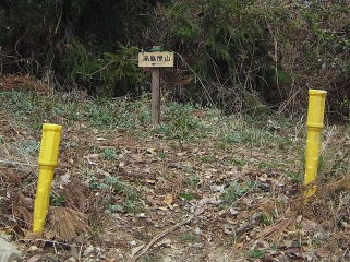 | P290.3を巻いて進むと、巻道との合流点に高鳥屋山と書いた道標ありました。帰りに登るつもりでしたが、この道標を見落とし登れませんでした。 |
