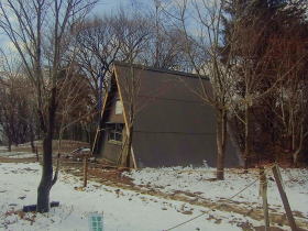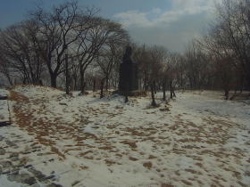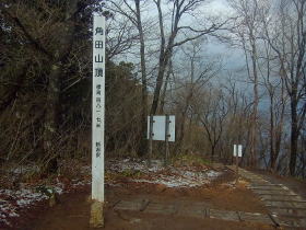 | 角田山山頂にはうっすらと雪が積もっていました。とても広くて平らな山頂です。 |