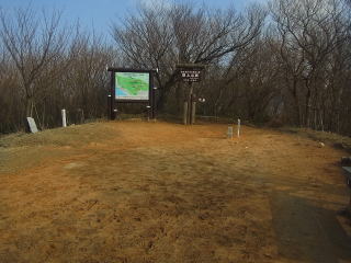 | 国上山山頂。芝の張ってある山頂で、その周囲にはカタクリがたくさんありました。 |
