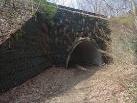 | ちご道は車道をくぐるこのようなトンネルを3っつほど経て国上寺駐車場へ。 |