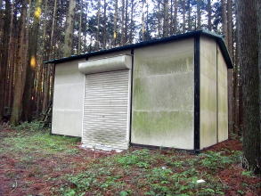 | 倉庫のような建物が林道終点にあり、ここから近野山に向かう道と巻く道に別れます。 |
