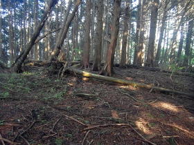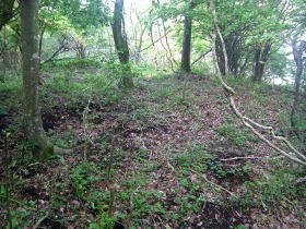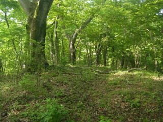 | 林道終点から近野山に向かう道は初めの内ははっきりしていましたが山頂に近づくと踏跡さえ分からなくなってしまいました。山頂から巻道に出るまでも踏跡らしきものはありませんでした。 |