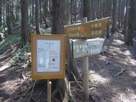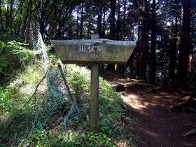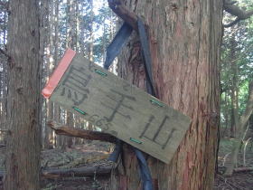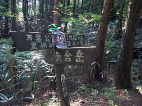 | 山伏平の道標。ここまで来ると道はしっかりと整備されていて気楽に歩ける。ちょっと矢倉岳にご挨拶に。 |