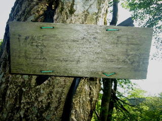 | 腕ヶ岳の山名標。消えてしまって読めません。 |