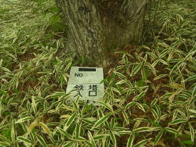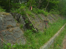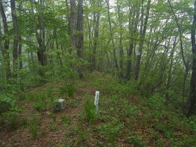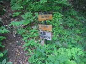 | 住友電気工業の鉄塔入口の道標がありましたが、道らしきものは笹に埋もれていました。 |