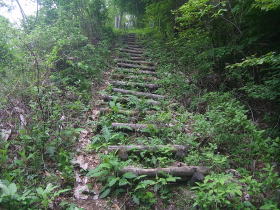 | 登山口近くの丸太の階段。丸太はだいぶ朽ちていました。 |