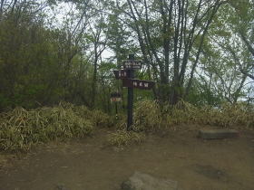 | 居鞍岳へは2つのルートがあることを案内する道標。 |
