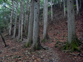 | 自然林らしい杉のある妙法ヶ岳に向う道 |